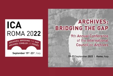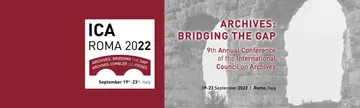 'Archives: Bridging the Gap’. The International Council on Archives is pleased to announce in collaboration with SOS Archivi, Symposia Srl that the 9th ICA conference will be held in 2022 in Rome from September 19th to 23rd. The event is organized with the partnership of ANAI, DGA and the Convention Bureau Roma & Lazio
