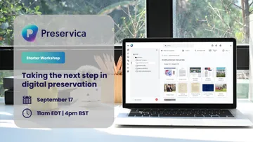 Join us on September 17th @ 11am EDT / 4pm BST for a workshop and discussion around how simple, powerful and automated Digital Preservation can be with Preservica Starter. We'll explore some of the latest innovations, enhancements to the powerful yet intuitive user interface and share more information on our new affordable Starter edition, which allows organizations to use departmental budget to grow their archive and secure the future of valuable digital collections.