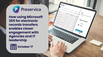 Following on from discussions at the CoSA Conference Affinity group on Agency Transfers, Mike Davis, Solutions Architect at Preservica will explore some of the best practice approaches and tools for enabling secure electronic transfers from within Microsoft 365 SharePoint. This session will include examples of how using Microsoft 365 and Microsoft tools for transfers can be used as a way to engage and involve Agency Records teams and elevate the role of the Archives with State IT Leadership. The session will use polls and surveys to further quantify the electronic records transfer challenge.
