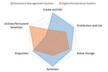 Electronic records are not going to survive by accident. Yet, not every electronic record can or should be converted to analog format. While document management systems are designed with features focusing on the active use portions of the records lifecycle, digital preservation systems are designed with a focus on monitoring and preserving records over time to ensure they are available long into the future.