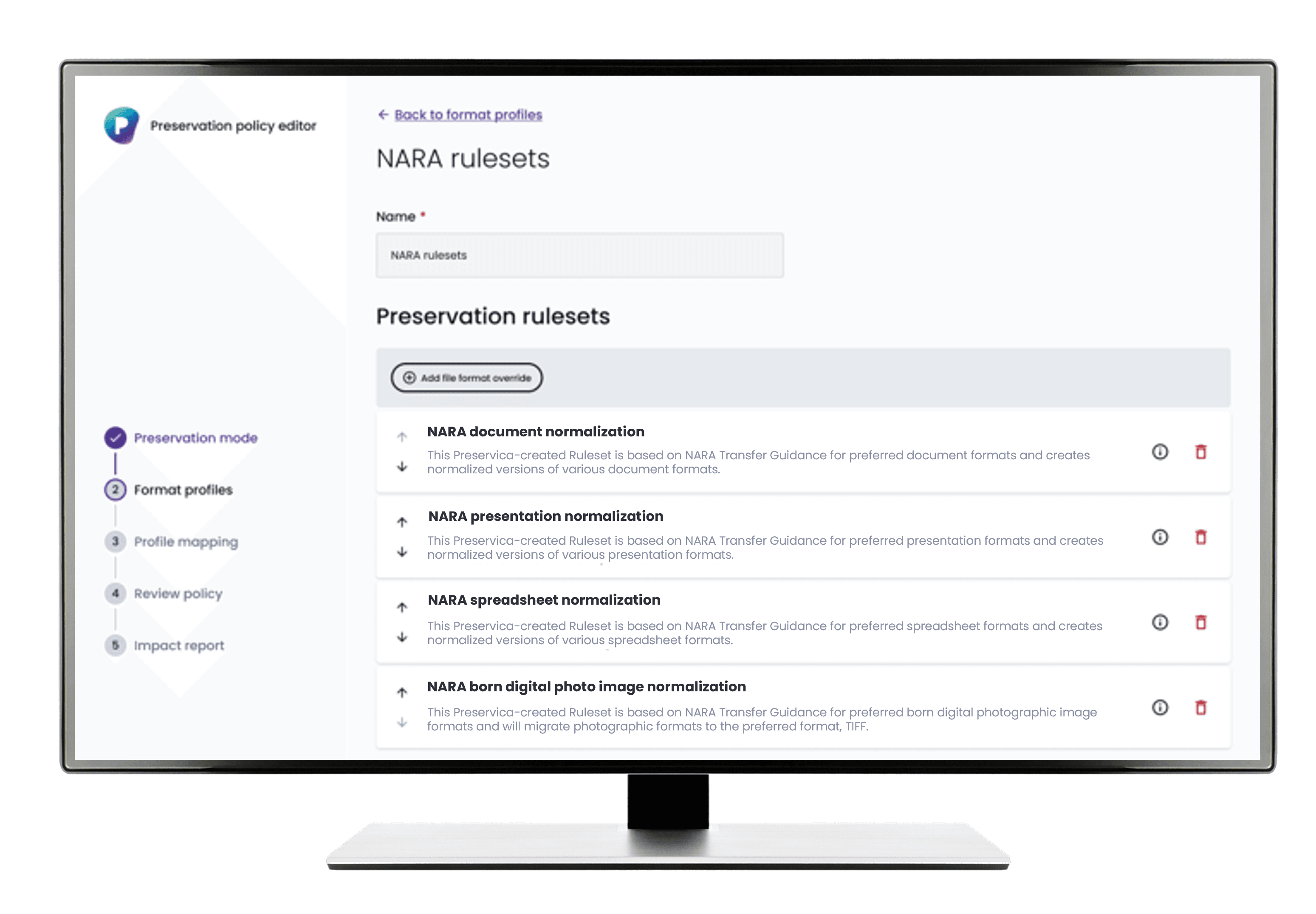 The flexibility also means you can update your Policy at any point and the changes will be automatically reflected in your archive. As Digital Preservation recommendations progress, this intelligent and dynamic “Zero-click” preservation approach ensures that your archive automatically remains up-to-date, relevant and aligned with the latest best practices.