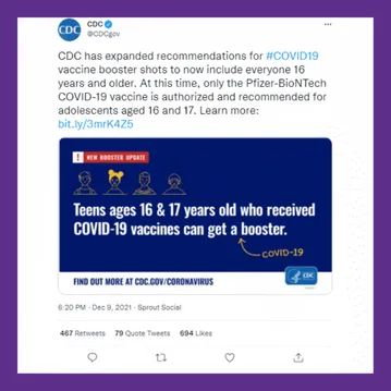 Directives like the CDC's recommendation for COVID vaccinations are now being posted on Twitter. Tweets like these need to be maintained and readable in perpetuity as a record.