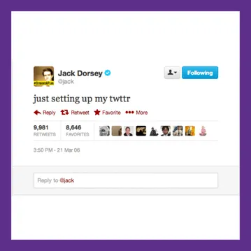 - The first tweet was sent by Jack Dorsey (Twitter’s CEO) on March 21, 2006 (pictured below).