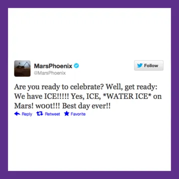 Here's another example to consider. The way that the world learned about ice on Mars was from the unmanned mission's dedicated Twitter account.