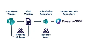 SharePoint records are seamlessly transferred into the central repository, enabling automatic maintenance of accurate, complete, and trusted records.Â
