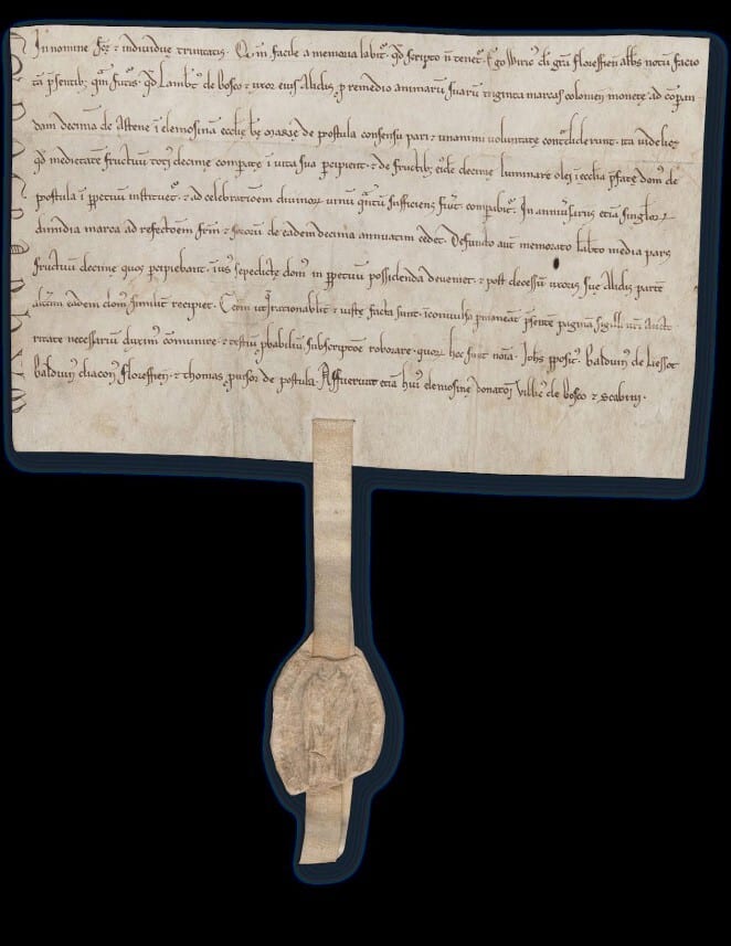 Letter from Abbot Wiricus of Floreffe dating from the period 1202-1212: the oldest document in oldest document in BHIC's collection.