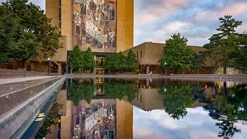The Hesburgh Library is the flagship building of the library system at the University of Notre Dame. © University of Notre Dame, Photo by Matt Cashore